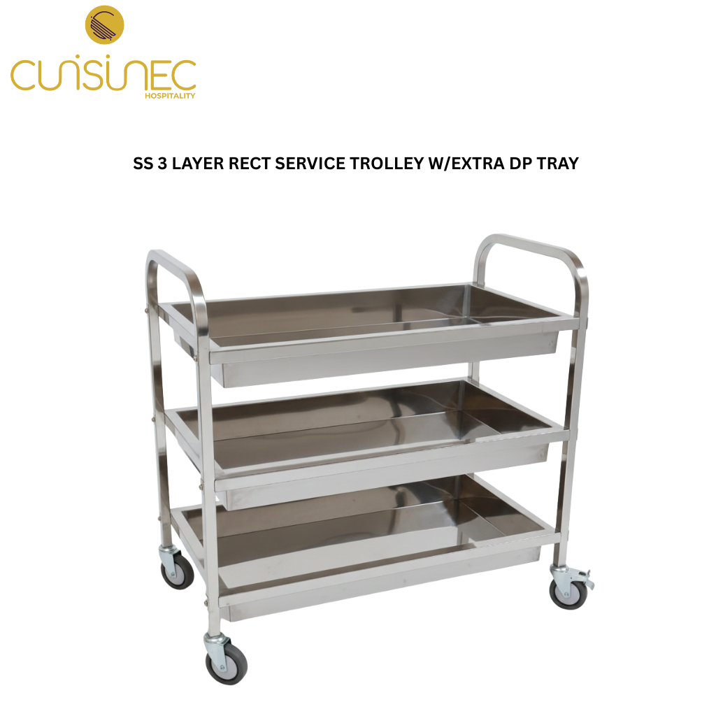 CUI SS 3 LAYER RECT SERVICE TROLLEY W/EXTRA DP TRAY HSE