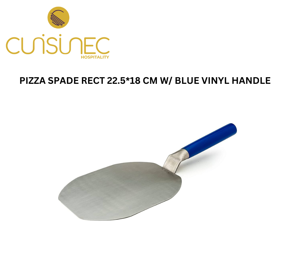 PIZZA SPADE RECT 22.5*18 CM W/ BLUE VINYL HANDLE
