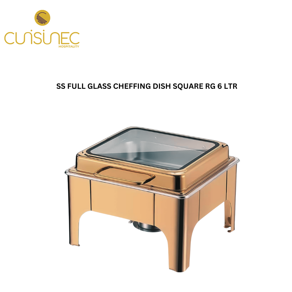 SS FULL GLASS CHEFFING DISH SQUARE RG 6 LTR